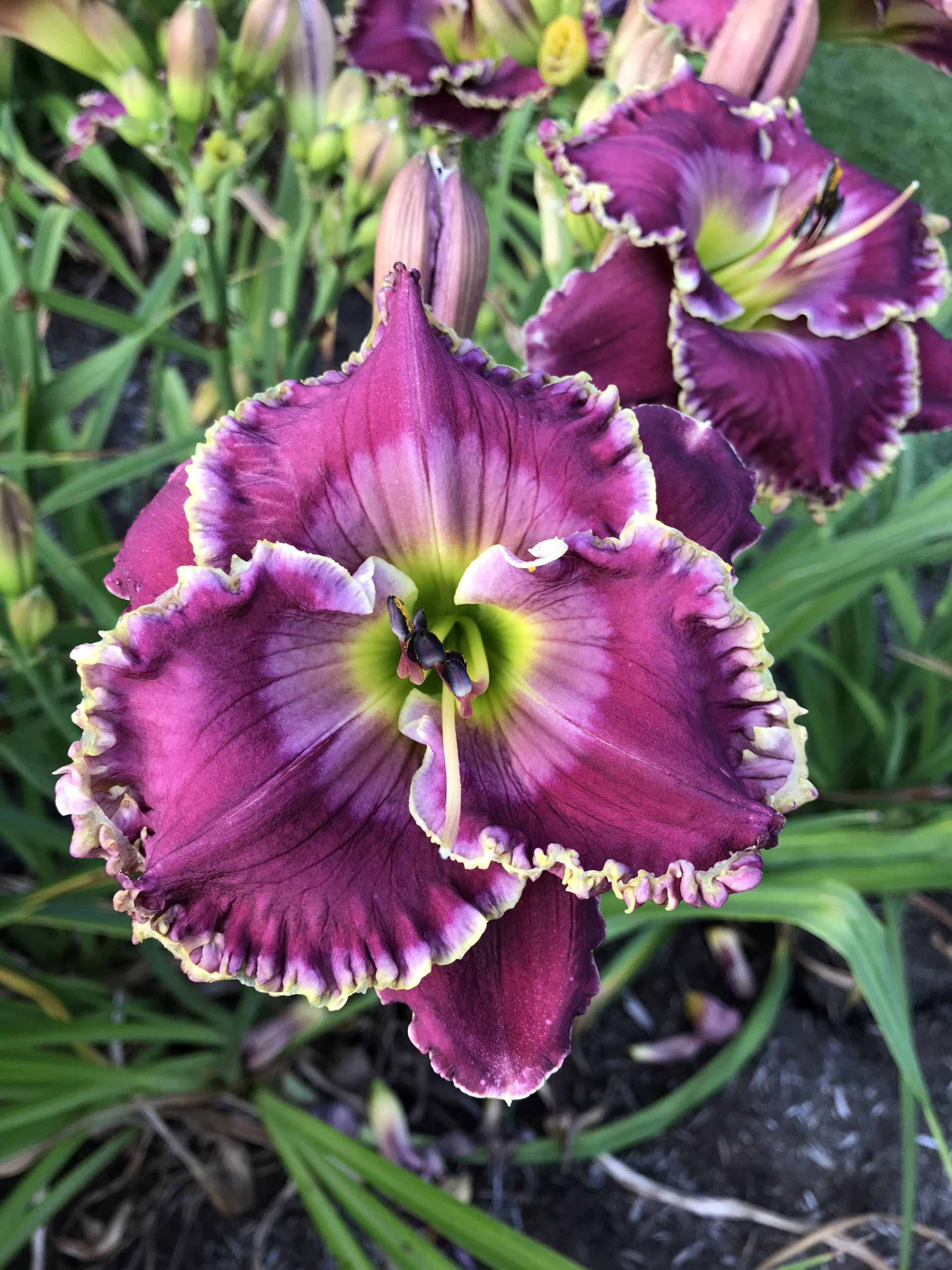 Well presented on erect 38 inch scapes with three to four way branching. Fertile both ways.